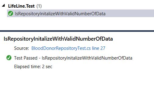 In the test project, I have created a class called BloodDonorRepositoryTest. Inside the unit test class initialize the test as shown in the listing below:
