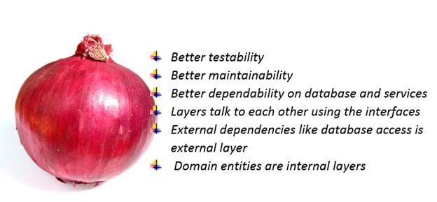 The Onion Architecture is the preferred way of architecting applications for better testability, maintainability and dependability on the infrastructures like databases and services. This term was first coined by Jeffery Palermo in his blog back in 2008.