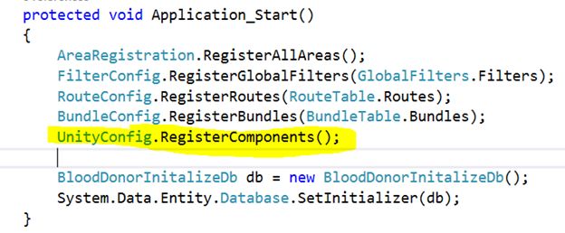 And inside the global.asax register all the components of the UnityConfig as shown in the following image.