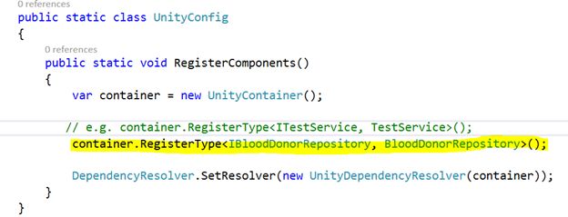 So far we have added the Unity container reference and registered the type. Now let us proceed to refactor the controller class to use the repository class. To start with: