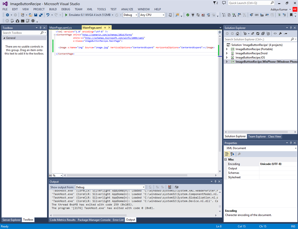 The MainPage.xaml will now look like this: