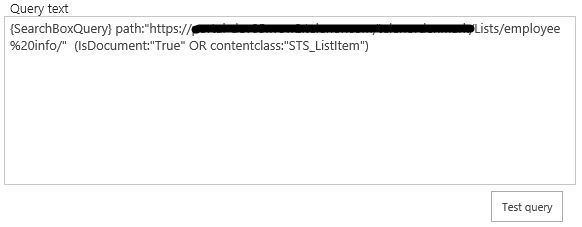 Scenario: I have a "Search Box" web part and "Content Search" web part on a page. The search box is sending a query keyword to the content search web part for displaying results. The content search web part has additional queries as shown in the following screenshot.