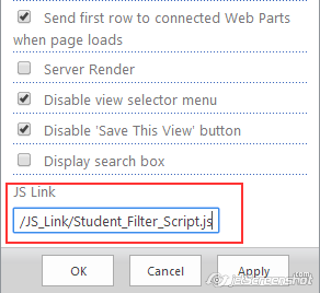 Created one JSLink (Student_Filter_Script.js) file that will alter the UI of the view. The JavaScript Link file is as in the following.