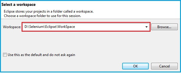 - Now, we need to configure Eclipse to integrate with the web driver. For that, double-click on "eclipse.exe". Select a workspace folder; that is, create a folder in any drive and select that.