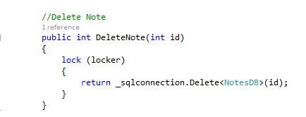 Now let's add a bit of code for the manipulation of the database by creating a class "NotesQuery.cs". The code for the manipulations is given below.