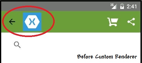 Create a class named CustomNavigationRenderer inside the Android project that will be a platform-specific implementation that contains code to hide the icon from the action bar.