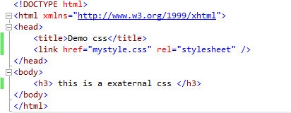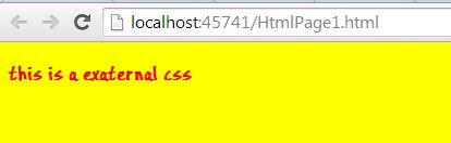 In External CSS we create a .css file and use it in our HTML page as per our requirements. Generally external Cascading Style Sheets are used whenever we have many of HTML attributes and we can use them as required; there is no need to rewrite the CSS style again and again in a complete body of HTML that inherits the property of the CSS file. There are two ways to create a CSS file. The first is to write the CSS code in Notepad and save it as a .css file, the second one is to directly add the style sheet in our Solution Explorer and direct Visual Studio to use it on our HTML page.