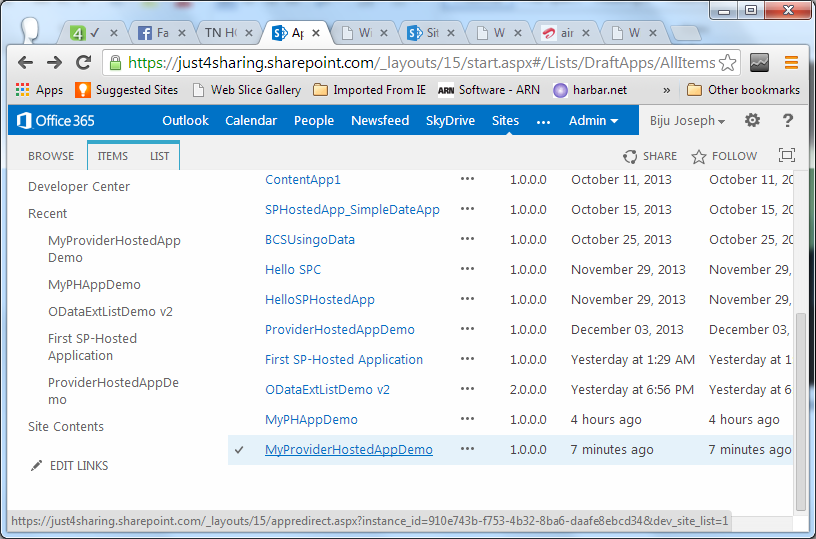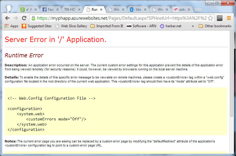 Step 19: You are done! You get the URL: https://myphapp.azurewebsites.net/Pages/Default.aspx?SPHostUrl=https%3A%2F%2Fjust4sharing%2Esharepoint%2Ecom&SPLanguage=en-US&SPClientTag=0&SPProductNumber=16%2E0%2E2510%2E1211