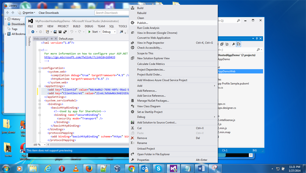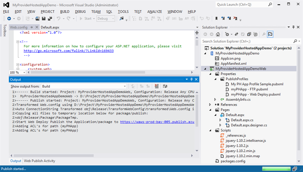 Step 10: The next step is to publish both projects separately. First, publish the app project as in the following: