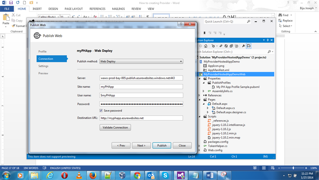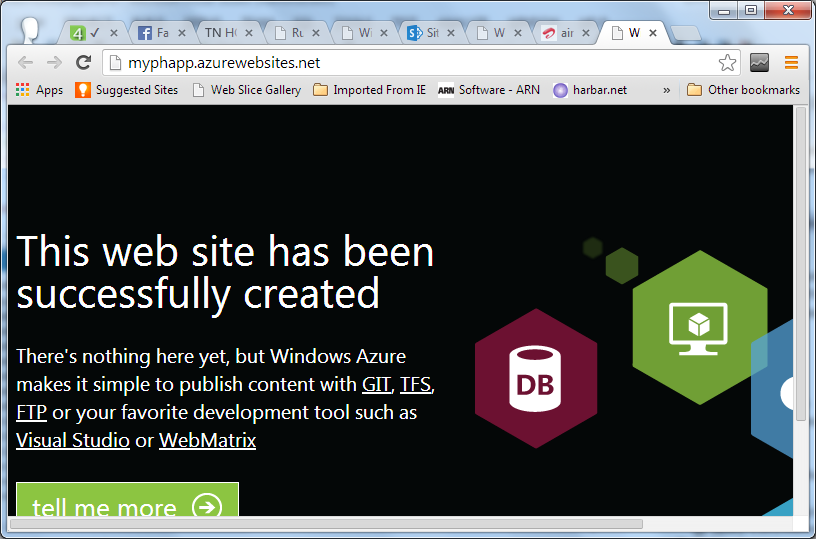 Step 7: I am done with my web site in Windows Azure. myphapp.azurewebsites
