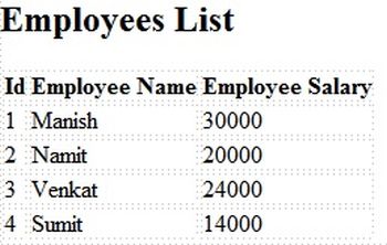 Step 2: For getting above output we need to pass the list of employees from our controller to view. There are various ways to pass data from controller to view. In this example I am using ViewBag to pass data. I have written following code to pass data from controller to view using ViewBag.