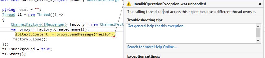 - lbltext.Content = proxy.SendMessage("hello");