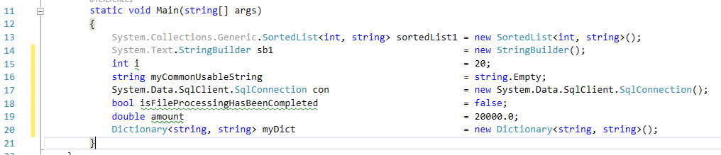 In most of the product based projects it is said that variable assignment in the project must be aligned properly. It increases the readability of code and any other developer can also understand the code easily. Align assignment also reduces the bug in project due to better readability. Let’s try to understand it with an example: