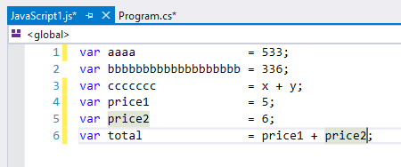 - Use Visual Studio Extension “Align Assignments”.