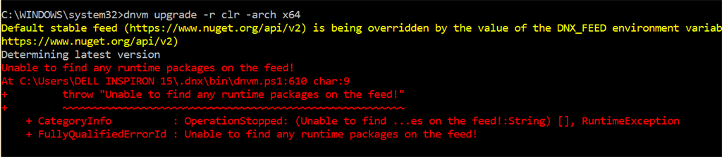 While searching on the internet for DNVM I found a lot of thread complaining that people are not able to use DNVM upgrade. I was also facing the same type of issue while running DNVM upgrade command.