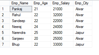 - Emp_Name, Emp_Age, Emp_Salary, Emp_City,