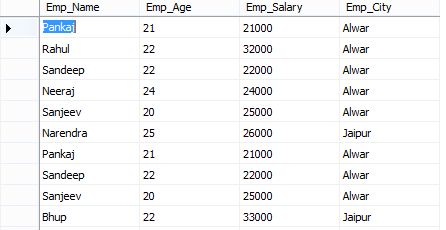 But as I explained previously, that is not a good approach. So now we will try the second methodology in which we delete (remove) all duplicate data from the table. This approach is best because it removes duplicate data permanently from the table. We aren't required to always select the distinct data from the table.