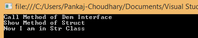 We can use an interface with a structure. In the preceding example we created an interface and structure. structure Str inherits the interface and implements the call() and show() methods of the interface.