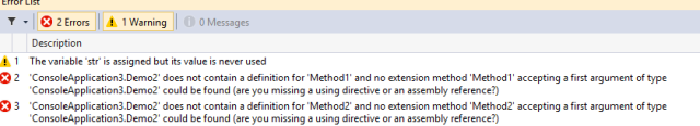 When we execute the preceding program it will throw an error. Because we cannot access the method of an explicit interface using an object of the class.