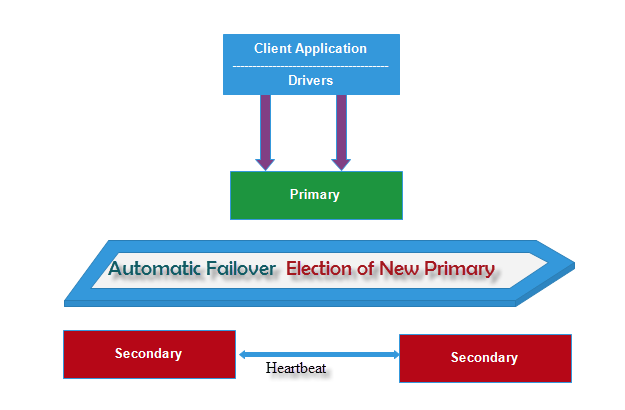 - During automatic failover or maintenance of the primary node, an election is made and the first secondary instance receiving a majority of votes becomes the new primary.