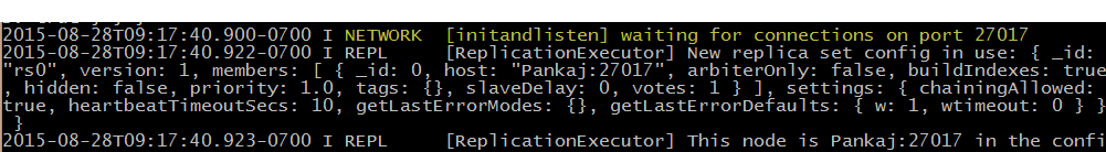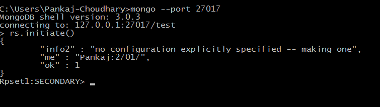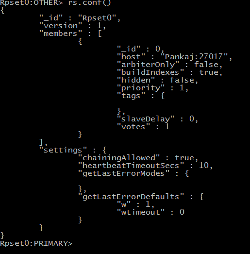 We can see that “Pankaj:27017” is elected as the primary and all the remaining mongod instances are secondary.