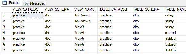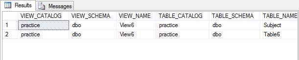 INFORMATION_SCHEMA.VIEW_TABLE_USAGEThis Information_Schema returns information about the table that contains the view. This Information_Schema determines how many and which tables a view contains. In other words the