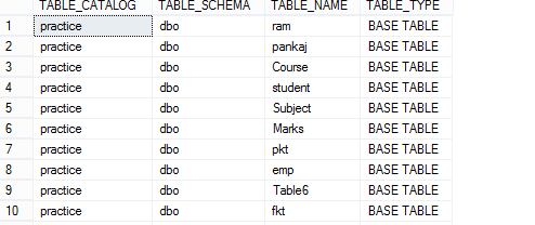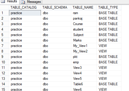 INFORMATION_SCHEMA.TABLESThis Information_Schema returns all the tables present in the current database. It also returns all the view names present in the database. System_View returns Table_Name and Table_Types. This System_View is used when we want to find all the tables and views present in a database.