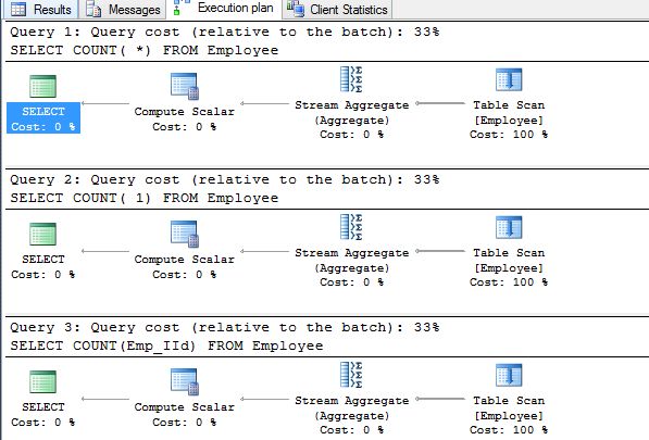 Exception plan of Count(*), Count(1), Count (Col_Name) are the same.
