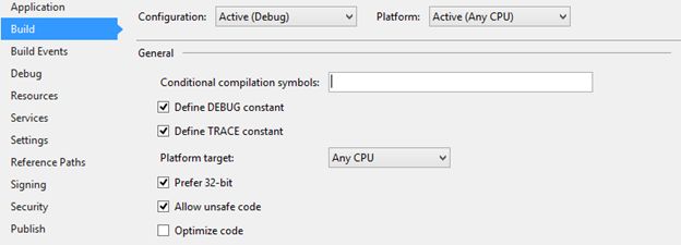 - Now select the option of ”Allow unsafe code” and mark it Check.