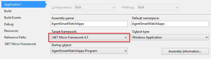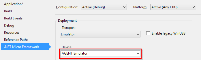Go to Solution Explorer and right click the project name and select .NET Micro Framework option, then a device “AGENT Emulator”.