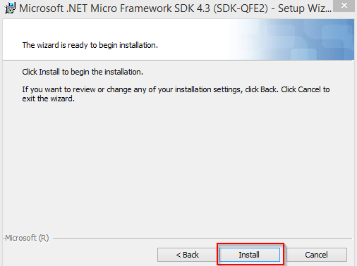 The Microsoft .NET Micro Framework SDK 4.3 Setup will open and click Install button.