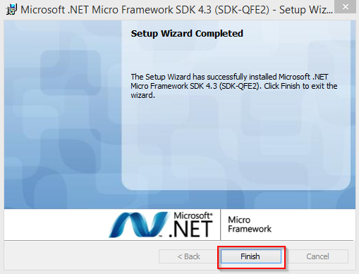After it is successfully installed in .NET Micro Framework SDK, you can see the following screen and click