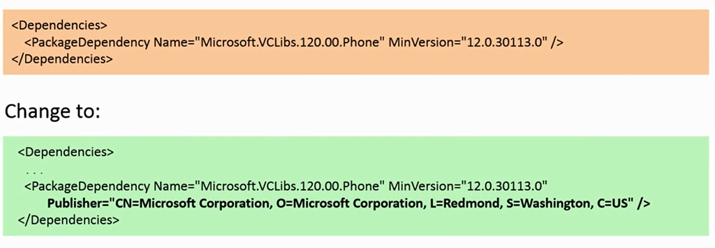 Add publisher to the Package Dependency as in the following: