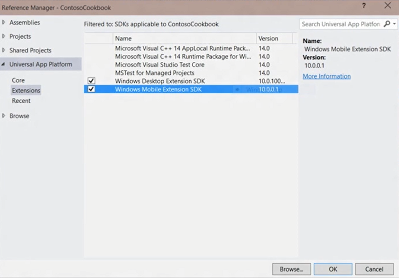 - Add a reference to the Platform Extension SDKs, if needed.