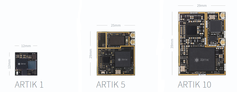 ARTIK is a family of modules (ARTIK 1, ARTIK 5, ARTIK 10) tailored for the Internet of Things (IoT). With a tiered architecture built for performance, optimized power consumption and memory utilization and footprint, ARTIK is designed specifically for a variety of applications, from low-end wearables to powerful hubs with local processing and analytics. ARTIK's best-in-class security solution includes secure element (SE) and machine learning for anomaly detection and Trusted Execution Environment (TEE).