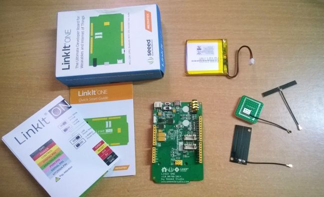 The Linkit One development board comes with dual Wi-Fi and Bluetooth, GSM (2G) and GPS/GLONASS antennas as well as a 3.7V Li-battery. It is easy to get started with Grove shield and sensors as they are compatible with this board.