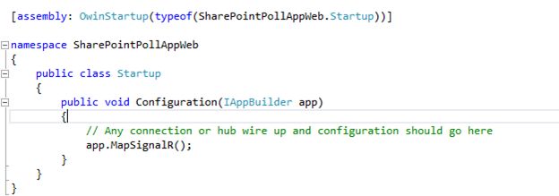After reading this article you will be able to create a SharePoint app part that displays the survey results chart that is updated at the instant someone submits a vote in the other app part. So one app part acts as the sender and one receiver, unlike a chat app where both the clients act as senders and receivers.