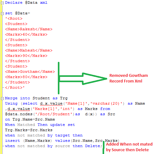 - insert (Name,Marks) values(Src.Name,Src.Marks);