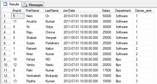 - select * ,dense_rank() over (partition by Department order by Salary desc) as [Dense_rank] from Employee