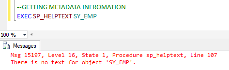 When we select run the preceding query we get an error, because the referenced object does not exist in the database.