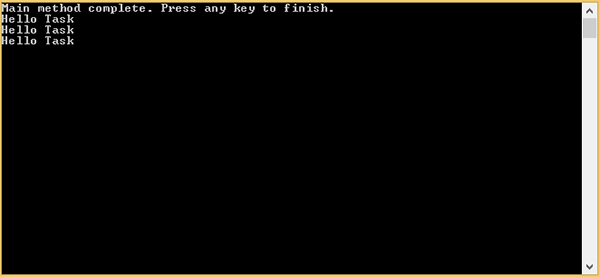 - Task task3 = new Task((obj) => HelloConsole(obj), "Task 3");