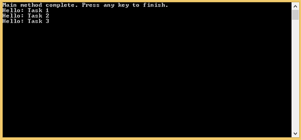 In the simplest scenarios to create and start a task, you just need to provide its body that represents the workload you want to run in parallel by passing in a System.Action delegate. There are several ways to declare the task's body. These are listed below and demonstrated in the first example.