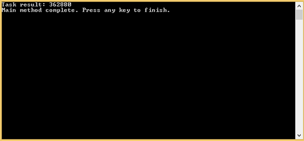 - Console.WriteLine("Task result: {0}", task1.Result);