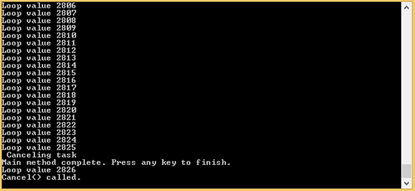 Finally, when the token is acquired and passed to the task's constructor, we simply call the Cancel() method of CancellationTokenSource to cancel it.