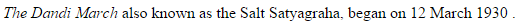 - <p><cite> The Dandi March </cite> also known as the Salt Satyagraha, began on 12 March 1930 .</p>