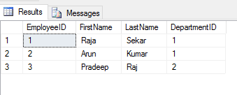 - new Employees { EmployeeID=2,FirstName="Arun",LastName="Kumar",DepartmentID=1},