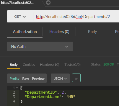 GET: api/Departments/{department ID} – Get the Department Records based on ID.