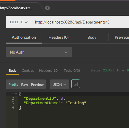 DELETE: api/Departments/5—delete the record in department table using this API.