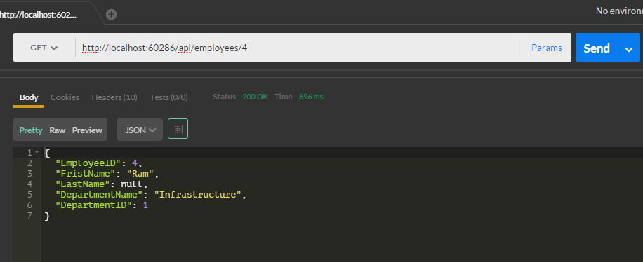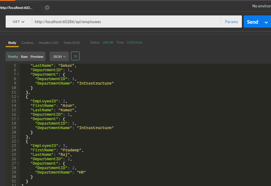 Now, the response of the /api/employee service as shown in the following figure 2,