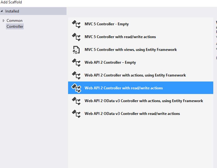 Now create a Web API controller class as in the following figure: